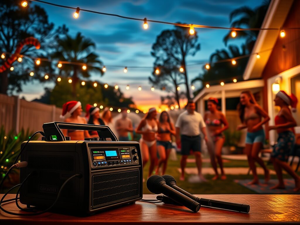 The right playlist ties everything together. You want a mix that feels like Christmas morning meets a beach vacation — reggae “Jingle Bells,” steel drum “Silent Night,” and Jimmy Buffett’s holiday tracks. Pair it with a solid waterproof Bluetooth speaker that can handle being near the pool, and you’re set.